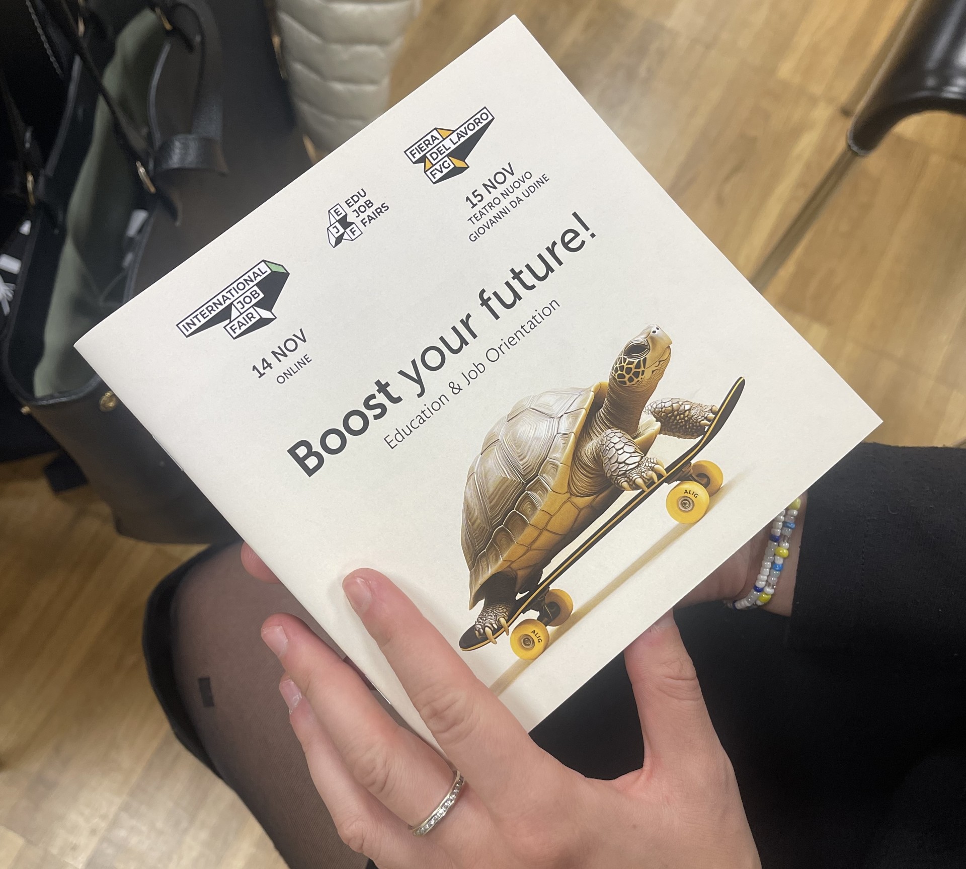 L’energia che caratterizza l’evento sarà rappresentata dalla mascotte di quest’anno: una tartaruga spinta da uno skateboard verso il mondo della formazione e del lavoro. La stessa campeggerà in piazza San Giacomo, sull’installazione della Fiera che verrà posizionata per ricordare il profondo legame tra i tre eventi, la città, la regione e l’intera comunità.