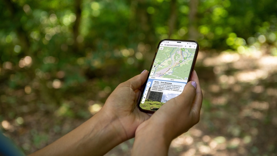 La mappa e la web app lavorano in sinergia per accompagnare il visitatore lungo il percorso. Mentre la mappa restituisce una visione d’insieme del territorio e indica i punti di partenza dei sei anelli, l’app – sviluppata da Hibou (www.hiboucoop.org) con i contenuti sui percorsi curati da Creaa (www.creaa.it) – arricchisce l’esperienza con approfondimenti digitali per ogni tappa: curiosità storiche, descrizioni dei luoghi, elementi interattivi e aggiornamenti sugli eventi locali. Il passaggio dalla mappa all’app è fluido e naturale: la prima orienta il cammino, la seconda lo amplia, permettendo di scoprire dettagli e racconti che rendono il percorso più vivo e coinvolgente. L’app arricchisce così l’esperienza sul campo, rendendo il racconto vivo e multimediale, senza sostituirsi alla dimensione fisica e sensoriale del cammino.