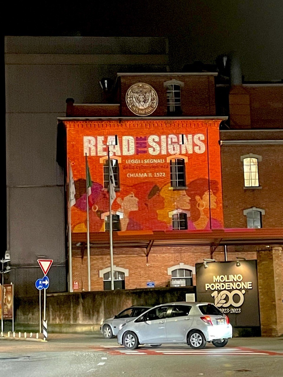 La proiezione sul Molino Zuzzi diventa così un punto luminoso nella città: un invito a guardare, capire e agire. Non si tratta di un’installazione decorativa, ma del segno visibile dell’adesione del Soroptimist Club di Pordenone alla campagna internazionale “Orange the World”, promossa dalle Nazioni Unite e da UN Women per dire no alla violenza sulle donne.