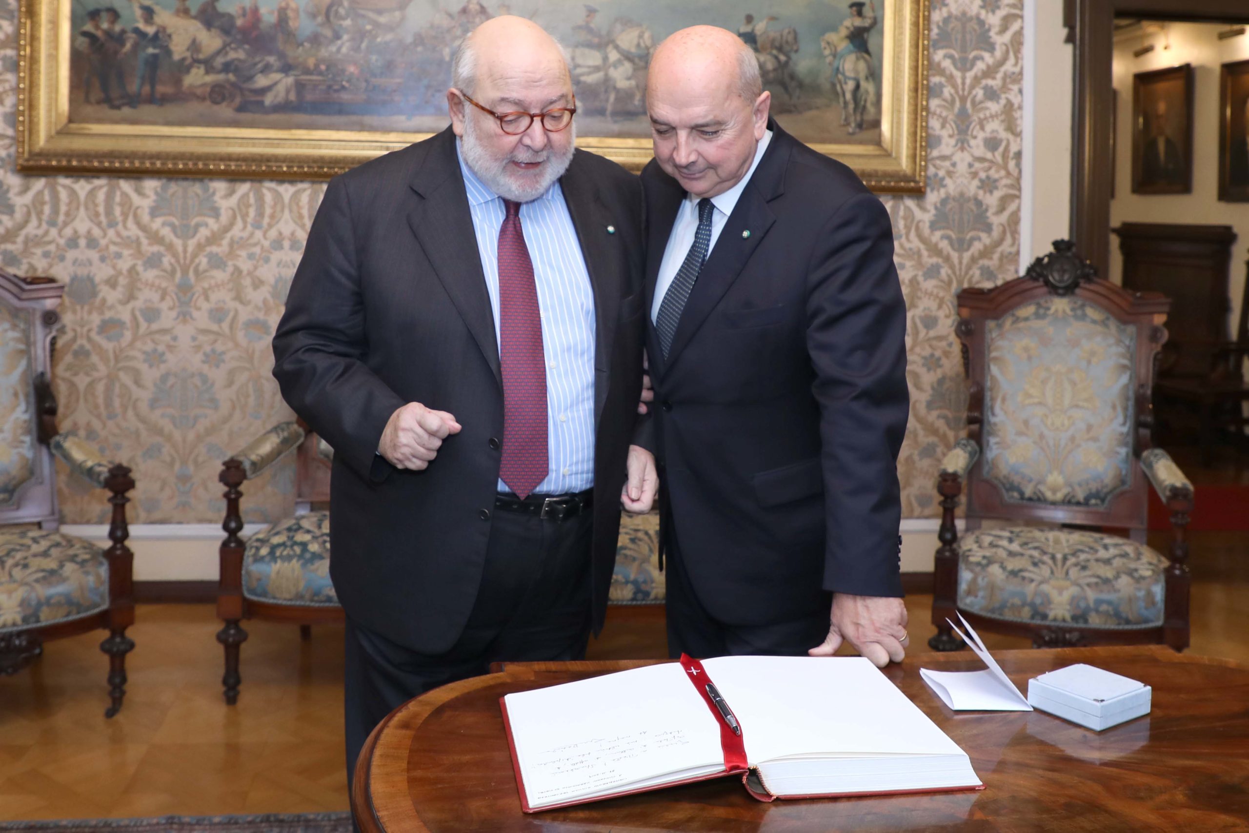 Dicendo ciò il diplomatico si è anche brevemente riferito alla storia di Trieste, al suo passato, al legame con l’Italia, al fatto che lo stesso Sigillo Trecentesco sia stato istituito dal Comune proprio nel 1954, l’anno del ritorno della città all’Italia. Concetti e sentimenti personali profondi che lo stesso Ambasciatore Caracciolo ha quindi espresso in una frase sul tradizionale Libro d’Oro degli ospiti illustri del Municipio: “Grazie Trieste! Straordinaria capitale di cultura, di affetti, di tradizione”. “Trieste – aveva detto poco prima della firma – mia ultima sede di lavoro, città per la quale credo di aver in qualche modo contribuito, con l’attività pur talvolta un po’ nascosta e non tanto nota dell’InCE, ai suoi attuali positivi sviluppi e alla crescita in atto, anche del suo ruolo a livello internazionale”.