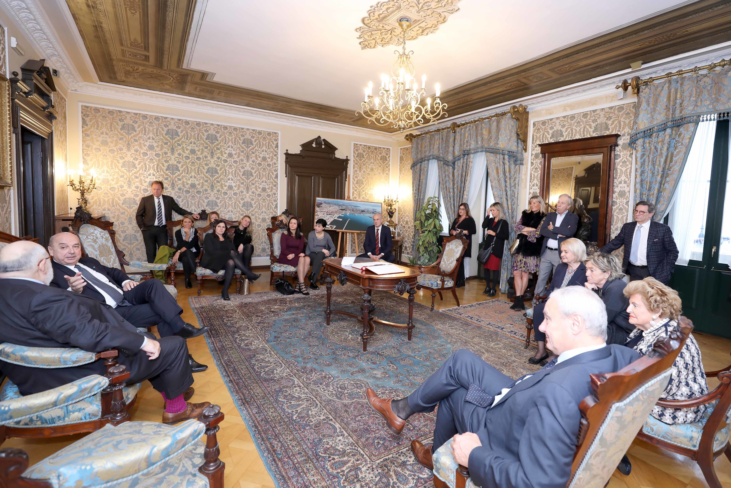 Trieste – Personalità della vita politica, sociale e diplomatica cittadina – tra le quali la marchesa Etta Carignani, la console di Serbia Ivana Stojiljković, il senatore Roberto Antonione – sono intervenute il 27 novembre nel Salotto Azzurro del Municipio per la cerimonia di conferimento del Sigillo Trecentesco della Città di Trieste all’Ambasciatore Giovanni Caracciolo di Vietri, Segretario Generale dell’InCE (l’Iniziativa Centro Europea, con sede a Trieste) fino al dicembre 2018, a compimento di una lunga e brillante carriera.