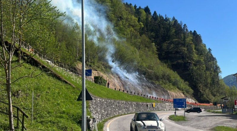 Incendio al limitare del bosco nel comune di Comeglians, iniziato lo spegnimento